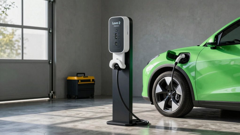 While you can charge your electric vehicle (EV) using a standard outlet, relying on a Level 2 charger is essential for maximizing convenience and efficiency. With a Level 2 charger, you’ll experience faster charging times, allowing you to get back on the road quickly. This makes it easier to plan your day without worrying about extended downtime. Plus, home installation of a Level 2 charger means you can charge your EV overnight, ensuring it’s ready for the next day’s adventures. You won’t have to search for public charging stations, giving you peace of mind. Investing in a Level 2 charger enhances your driving experience, providing the charging convenience you need for a hassle-free, electric lifestyle.