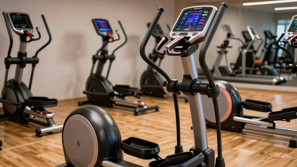 Portability is another key factor; look for machines with wheels or lightweight frames, making it easy to move them around as needed. By prioritizing size and portability, you’ll guarantee your elliptical fits seamlessly into your lifestyle, allowing you to enjoy your workouts without feeling cramped. Make the right choice, and you’ll maximize your fitness experience!