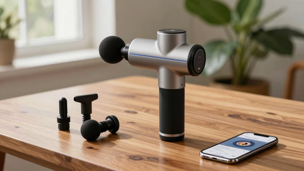 There are various attachment options available that can greatly enhance your massage gun experience. Choosing the right attachments is vital for achieving your desired results, whether you’re targeting soreness or improving recovery. Pay attention to attachment compatibility and materials to guarantee they suit your needs.