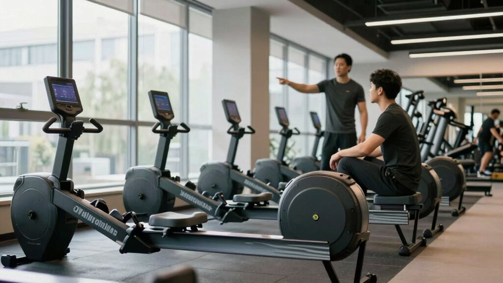 When choosing a rowing machine, consider the type of resistance it offers, as this can greatly affect your workout experience. You’ll also want to look for an adjustable seat height to guarantee proper form and comfort during your sessions. These features can make a significant difference in how effectively you reach your fitness goals.