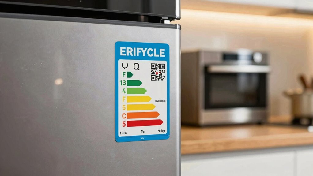 How can you tell if an appliance is energy-efficient just by looking at its label? Check the energy rating, which provides a clear measure of efficiency. Remember, energy label myths can lead you to overlook true efficiency; always rely on official labeling regulations for accurate info. The ratings are based on standardized testing, making comparisons straightforward. Look for: