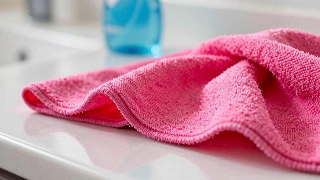 You should avoid using harsh chemical cleaners and bleach on your microfiber cloths, as they can cause damage. These substances weaken the fibers and reduce the cloth’s effectiveness. Instead, opt for mild soap and water or specialized microfiber cleaners. Always read labels and test a small area first. By steering clear of these damaging products, you’ll extend the lifespan of your microfiber cloths and ensure they clean effectively.
