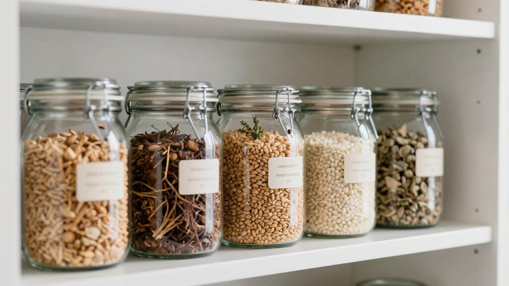 Proper food storage is essential for preventing pantry pests from making themselves at home. To keep bugs out, use pest proof storage containers that seal tightly. This prevents pests from entering and contaminating your food. Store grains, cereals, and dried fruit in airtight containers to maintain freshness and block pests. Keep pantry shelves clean and dry, as moisture attracts bugs. Regularly check for any signs of infestation, and discard compromised packages immediately. Additionally, avoid leaving food in cardboard boxes or paper bags, which pests can easily chew through. By implementing these simple strategies, you create an uninviting environment for pantry pests. Remember, pest-proof storage is your best defense against tiny invaders sneaking into your food supplies. Stay vigilant and keep your pantry bug-free.
