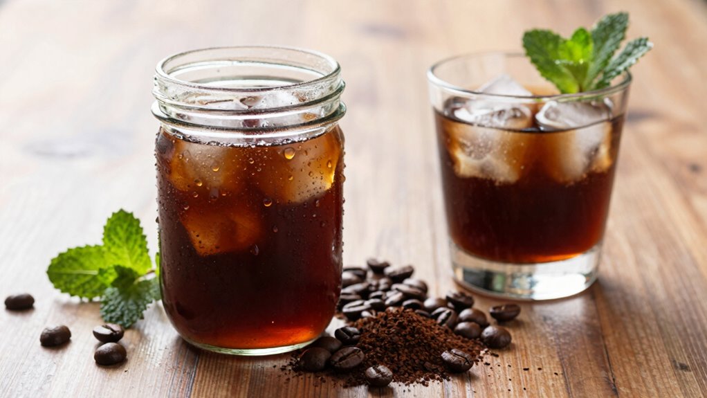 You know that feeling when you’re ready to conquer the day? Cold brew coffee can help with that, packing around 200 mg of caffeine per 12 oz serving. In cold brew comparison to hot brewed coffee, which typically has about 95 mg in the same amount, you’ve got a serious boost. Just remember, the caffeine content can vary based on the brewing method, so always check the specifics if you need that extra kick!