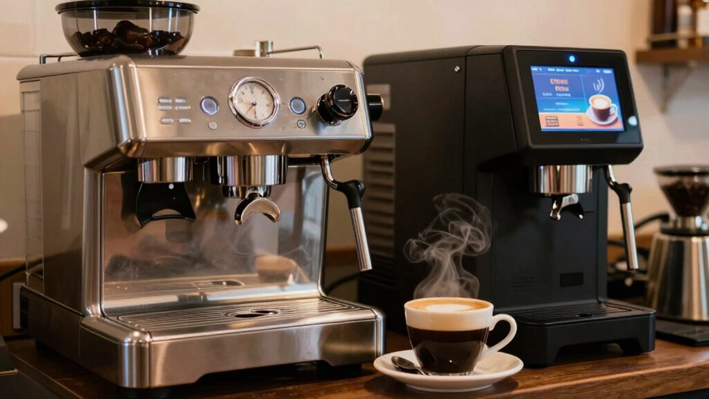 When you’re choosing between a semi-automatic and a super-automatic coffee machine, what really sets them apart? The primary difference lies in control and convenience. A semi-automatic machine gives you more hands-on involvement, allowing you to fine-tune the extraction process, which can enhance the coffee flavor. You’ll appreciate the ability to adjust grind size and brewing time, leading to a more personalized cup.