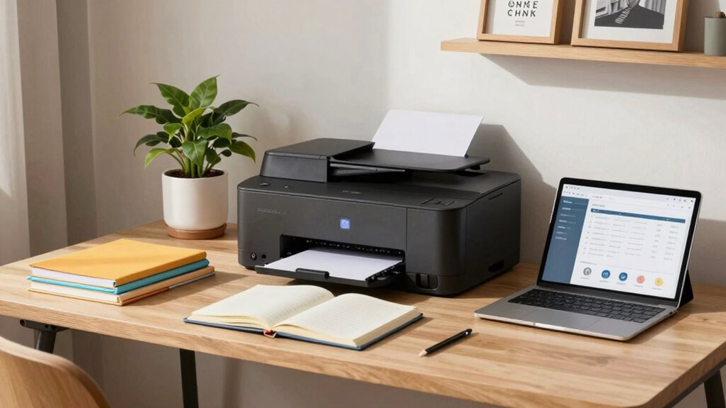 A multifunction printer can be a game-changer for your home office, offering essential features like scanning, copying, and faxing. When considering your options, pay close attention to the scanning capabilities. A printer with a high-resolution scanner can help you digitize important documents efficiently. Look for models that support automatic document feeding, which saves time on larger tasks. Additionally, understanding maintenance routines can extend the lifespan of your device and ensure consistent performance. Regular cleaning and using manufacturer-recommended supplies are crucial for maintaining scanning quality over time. Proper printer placement, including adequate ventilation and easy access for supplies, can also help maintain optimal operation. Ensuring proper device connectivity is vital for seamless integration with your home network and devices. For added convenience, consider printers with wireless options, which facilitate easier setup and use around your home. Next, evaluate the copying quality; it’s vital for producing clear, professional documents. A printer that excels in copying will guarantee your reproductions are true to the original, with vibrant colors and sharp text. Finally, if you still use faxing, make sure the model includes this feature, making your home office fully equipped for all your document handling needs.
