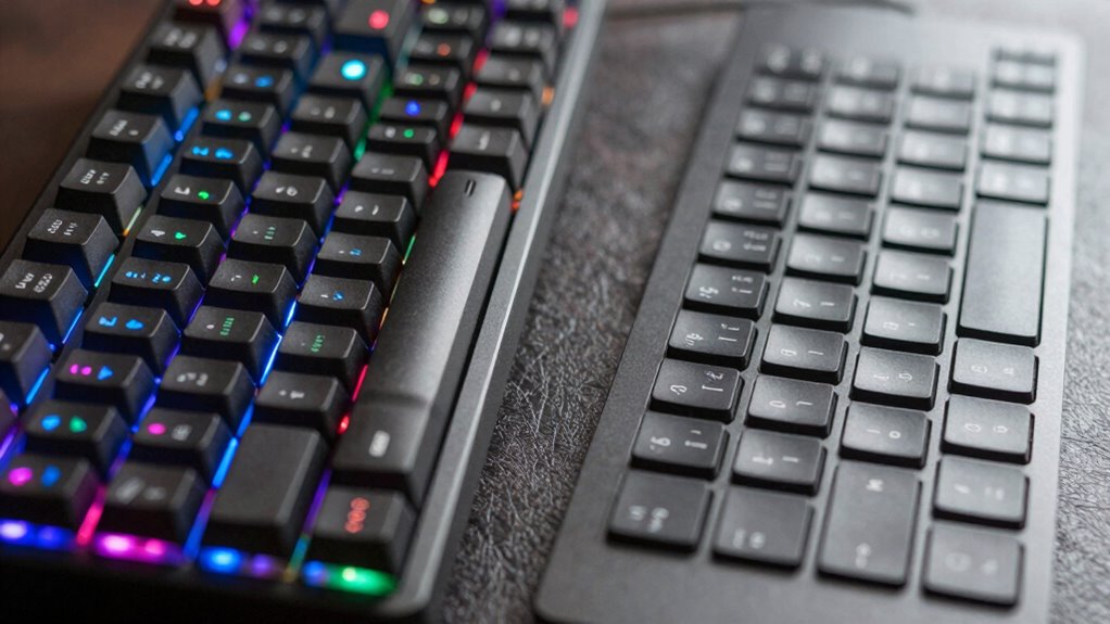 Mechanical and membrane keyboards each offer distinct experiences that cater to different preferences and needs. With mechanical keyboards, you enjoy various key switch types, like tactile, linear, and clicky, which provide unique typing feedback. This feedback can enhance your typing experience, making it feel more engaging and responsive. On the other hand, membrane keyboards use a softer feel, often leading to quieter typing sessions. They typically feature a single rubber dome under the keys, which can sometimes result in a less satisfying response. If you prioritize durability and customization, mechanical keyboards are likely your best bet. However, if affordability and compact design matter more to you, a membrane keyboard might be the way to go. Choose based on what feels right for you!