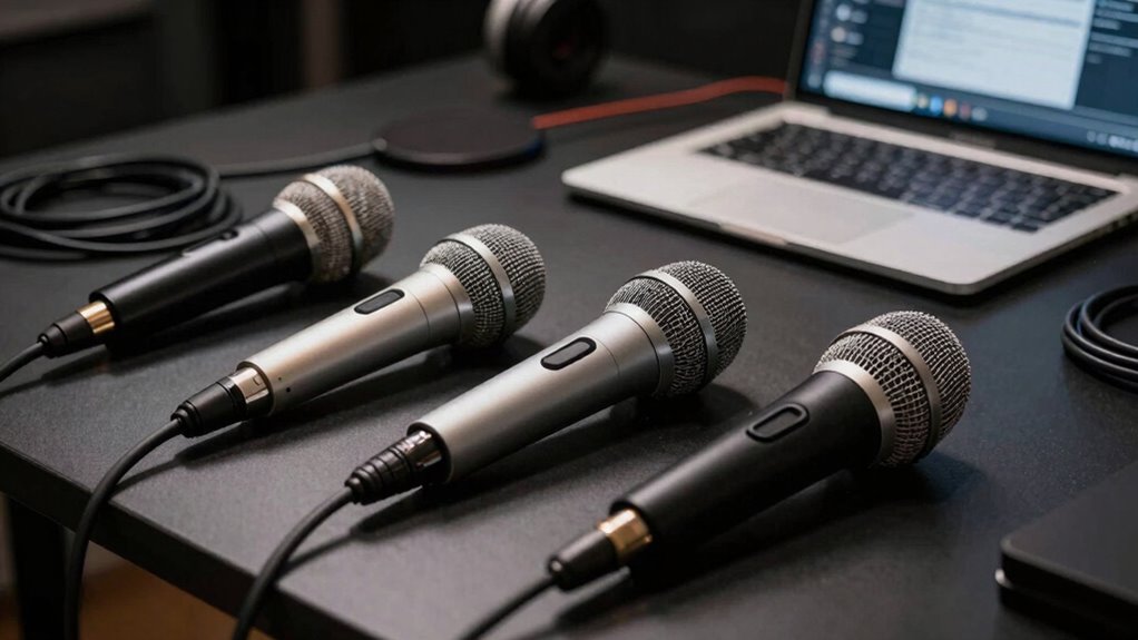 When it comes to choosing the right microphone for streaming, understanding the differences between dynamic and condenser mics can make a significant impact on your audio quality. Dynamic microphones excel in handling high sound pressure levels, making them ideal for loud environments. Their robust construction and dynamic characteristics provide durability and less sensitivity to background noise. On the other hand, condenser microphones offer exceptional clarity and detail, capturing a wider frequency range. The condenser benefits shine in quieter settings, where you want to pick up nuanced sounds and vocals. By evaluating your streaming environment and needs, you can confidently choose the microphone that enhances your audio experience, ensuring your audience hears you clearly and effectively.