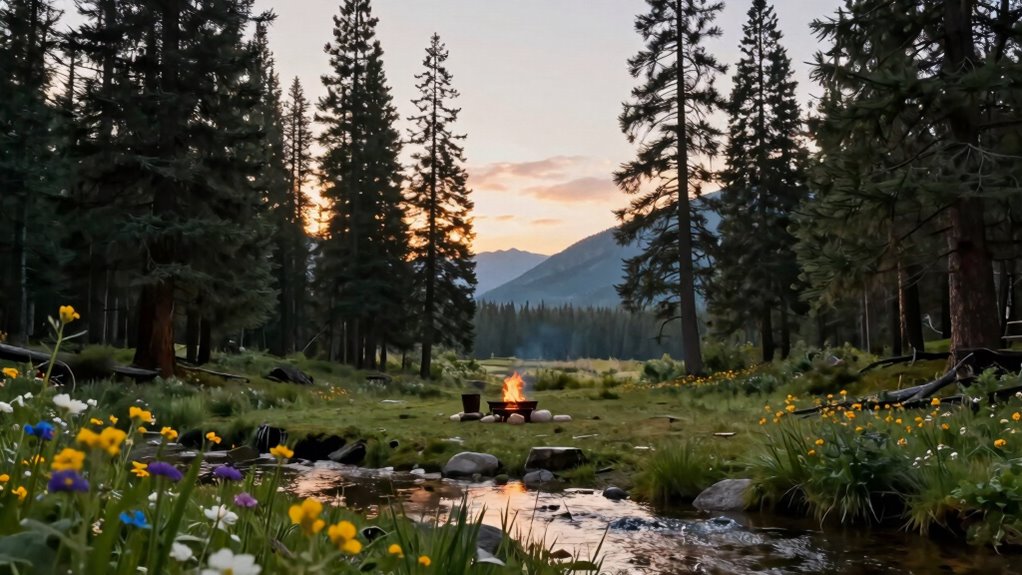 When camping, follow common etiquette rules like Leave No Trace principles. You’ll want to pack out what you pack in, ensuring nature stays pristine. Respect quiet hours—keep noise levels down to enjoy the serenity of the outdoors and let others do the same. If you see a campsite, keep your distance and don’t intrude on others’ space. By following these guidelines, you’ll foster a friendly atmosphere for everyone.
