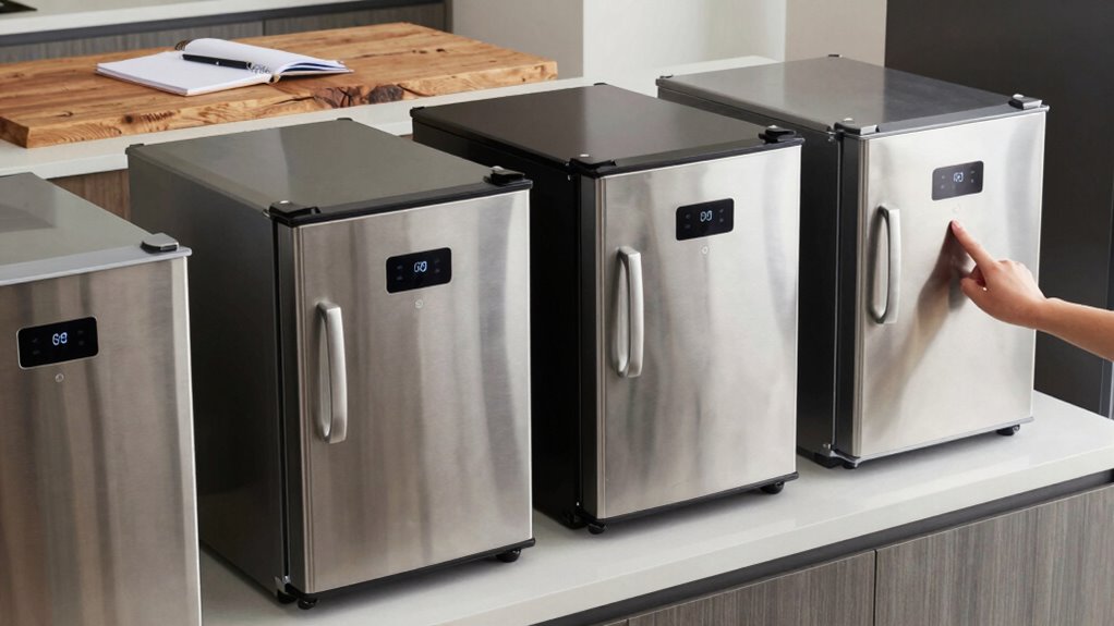 While you might be tempted to focus solely on features like size and cooling efficiency, the material quality of a portable fridge freezer plays an important role in its overall performance and longevity. Different material types, such as metal and plastic, affect not only the weight but also the durability of your unit. When evaluating material quality, look for sturdy construction that can withstand rough handling and varying temperatures. Durability testing is vital; check for certifications or reviews that highlight how well the fridge freezer holds up under real-world conditions. Investing in a high-quality build means you won’t just have a functional appliance, but one that lasts through all your adventures. Choose wisely, and you’ll reap the benefits for years to come.