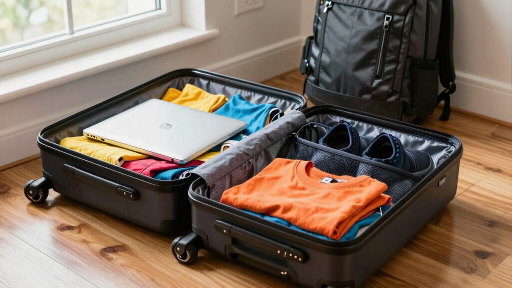 As you prepare for your trip, creating a packing list can help you stay organized and assure you don’t forget essential items. Start by jotting down your packing essentials, like clothes, toiletries, and electronics. Consider the activities you’ll do and the weather at your destination to tailor your list accordingly. Break your list into categories to enhance travel organization; for example, create sections for clothing, personal items, and documents. This way, you’ll have a clear overview of what you need. Don’t forget to include any travel necessities like chargers or medications. Review your list before you pack to confirm you’re all set for stress-free travel, allowing you to focus on enjoying your trip instead of worrying about what you might’ve left behind.