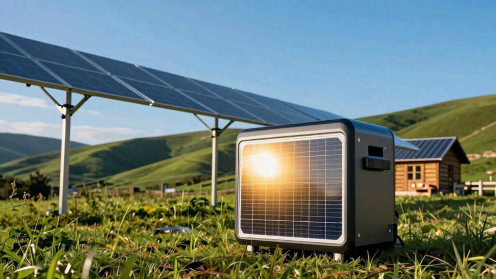 Solar generators can be a game changer for off-grid living, offering significant cost savings over time. They provide affordable alternatives to traditional fuel-powered generators, which can be expensive to maintain and operate. By harnessing the sun’s energy, you’ll cut down on electricity bills and reduce your reliance on external energy sources. This shift not only promotes energy independence but also guarantees that you have a reliable power supply, regardless of where you are. Plus, with minimal maintenance costs, you’ll save even more in the long run. As you invest in solar technology, you’re making a commitment to a sustainable future while enjoying the financial benefits that come with it. Embrace the shift to solar and enjoy the freedom it brings. Power quality is an important aspect to consider for ensuring your off-grid setup runs smoothly and efficiently. Incorporating solar energy systems into your home can further optimize your energy use, making your off-grid living experience even more sustainable, especially when combined with home automation features that enhance safety and efficiency. Additionally, focusing on system safety measures can help prevent common issues and protect your investment.