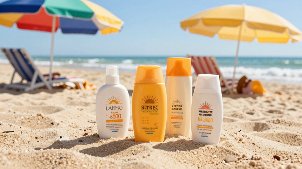 To achieve maximum protection from the sun’s harmful rays, you need to apply sunscreen correctly. Start by using a generous amount—about an ounce for your entire body. Apply it at least 15 minutes before sun exposure, allowing it to penetrate your skin. Use effective sunscreen application techniques, like rubbing it in evenly and covering all areas, including often-missed spots like ears and feet. Don’t forget to apply to your face, using a separate facial sunscreen if needed. Reapply every two hours, or more frequently if you’re sweating or swimming. If you’re out for a long day, set reminders to keep track of your reapplication frequency. This guarantees you maintain ideal protection throughout your time in the sun.
