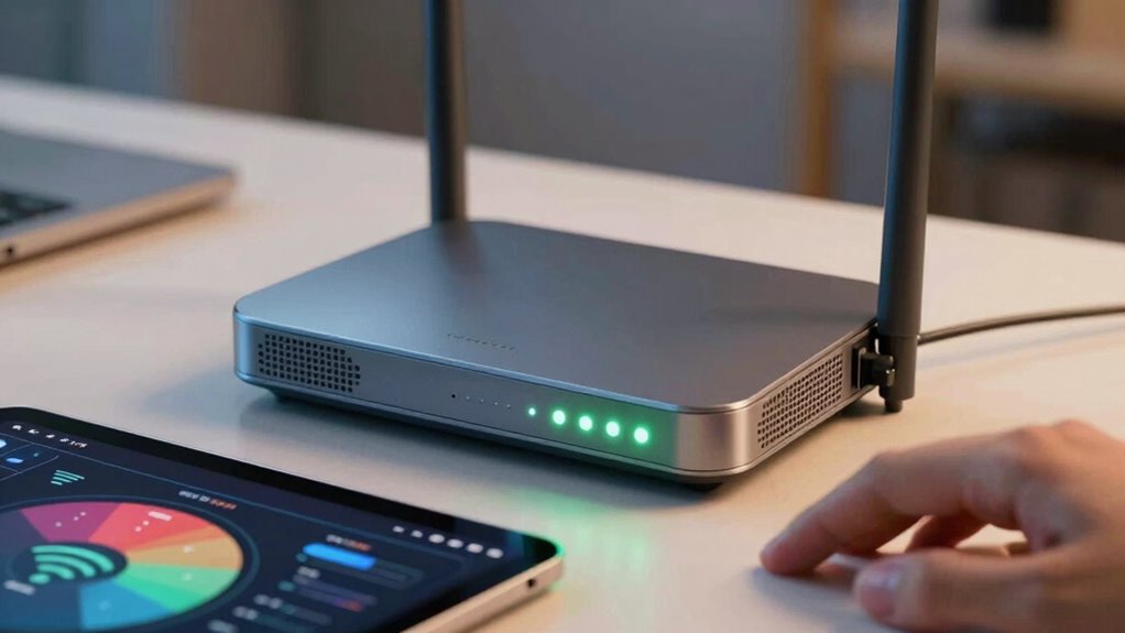 Wi-Fi standards directly impact your streaming and gaming by enhancing bandwidth optimization and reducing latency. Newer standards like Wi-Fi 6 and Wi-Fi 6E offer faster speeds and more reliable connections, so your videos buffer less and your game responses are quicker. They handle multiple devices better, decreasing lag and ensuring a smoother experience. Upgrading to the latest standards helps you enjoy high-quality streaming and responsive gaming with minimal interruptions.
