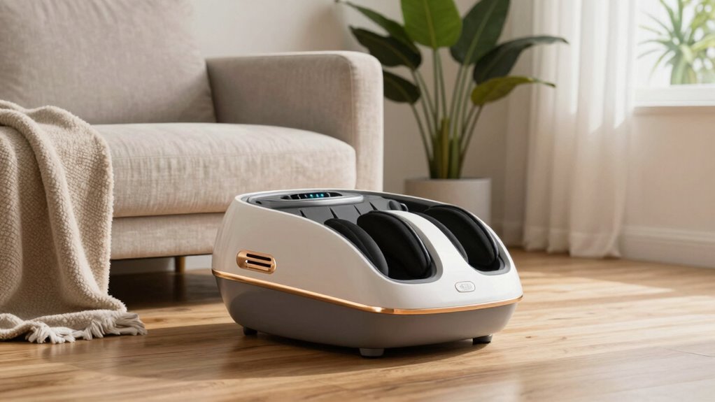 When choosing a foot massager for plantar relief, portability and ease of use are key factors that can make a big difference in your experience. A lightweight, compact device with a carry handle or slim design makes it easy to move and store, fitting comfortably in closets or under desks. Simple controls, like touch panels or remote controls, let you adjust settings without bending or effort. Wireless or corded models with long, flexible cords provide freedom of movement during use, enhancing convenience. Removable, washable foot covers or sleeves make maintenance quick and hygienic, especially if sharing the device. Overall, a portable massager weighing under 8 pounds offers flexibility and ease, ensuring you can enjoy relief wherever and whenever you need it.