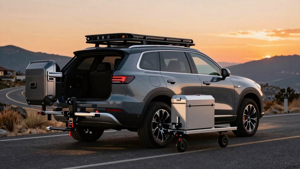 If you’re looking to maximize your vehicle’s space, I’ve found the top 15 hitch cargo carriers for 2026. Many support up to 500 lbs, with some even reaching 750 lbs. They’re made from heavy-duty steel or aluminum and often feature weatherproof designs. Installation is straightforward, and many offer added accessories like ramps or cargo bags. You’ll appreciate the enhanced stability with raised side rails too. Stick around to discover the top models and essential factors to evaluate!