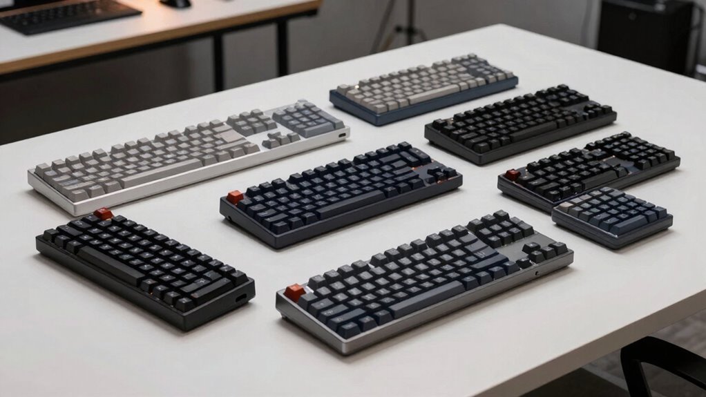 - Highlights quiet mechanical switches such as Red, Brown, or pre-lubed linear options for minimal noise.