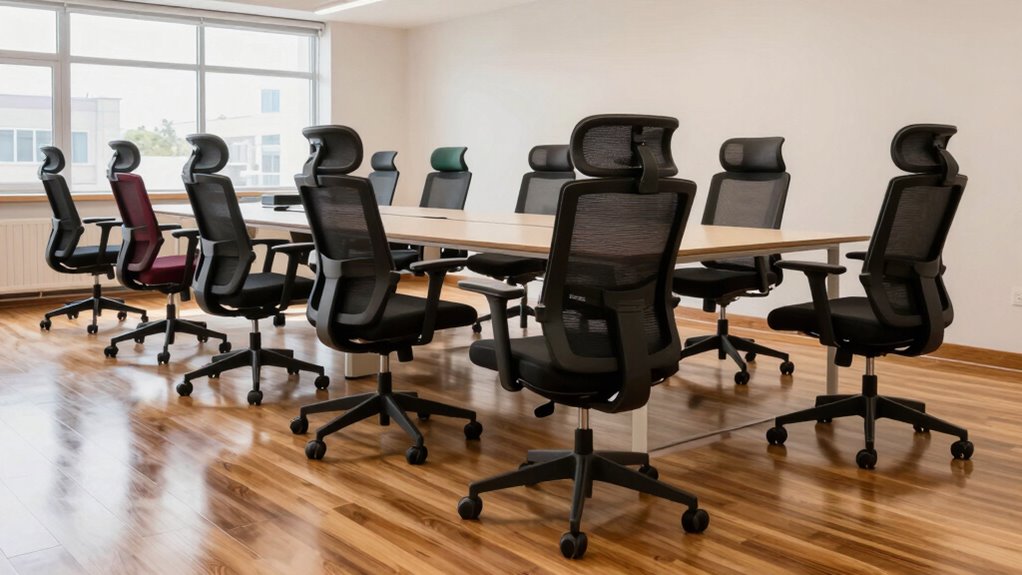 Have you ever noticed how proper lower back support can make a big difference during long hours at your desk? Adjustable lumbar support lets you customize the height and depth to match your lower back’s natural curve, encouraging better spinal alignment. This feature helps reduce lower back pain and fatigue by providing targeted support exactly where you need it. The ability to fine-tune lumbar support guarantees a personalized fit, accommodating different body shapes and preferences for maximum comfort. Chairs with adjustable lumbar support can move both horizontally and vertically, alleviating pressure points and promoting healthier posture throughout the day. Best of all, you can enjoy these ergonomic benefits in an office chair under $500 without sacrificing quality or comfort.