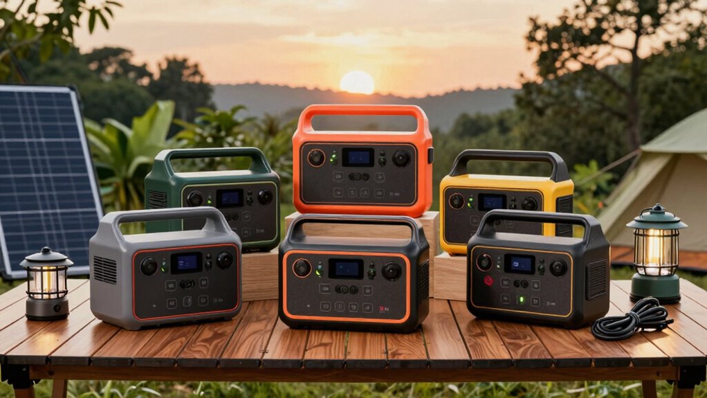 Choosing a portable power station that stands the test of time is essential, especially if you want reliability during camping trips or emergencies. I always prioritize high-quality materials like ABS or fire-resistant designs, which enhance durability against wear and environmental factors. When looking at battery options, I prefer lithium iron phosphate (LiFePO4) batteries, as they retain at least 80% capacity after over 3,500 charge cycles. Multiple protection layers and advanced battery management systems are vital for safety and reliability too, minimizing failure risks. I also check for a reliable UPS function with a transfer time under 20 milliseconds, ensuring my devices stay powered during interruptions. Finally, a longer warranty—five years or more—signals the manufacturer’s confidence in their product.