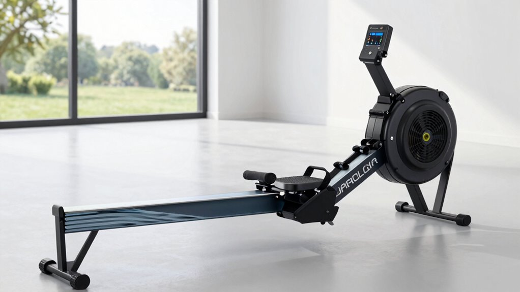 Think of a rowing machine as a sailboat ready to glide across your home’s water. Most models fit comfortably in a space about the size of a small closet or a large yoga mat, roughly 6 to 8 feet long and 2 feet wide. I recommend measuring your space beforehand to make certain it fits well, making your workout feel like a smooth voyage rather than a cramped dock.