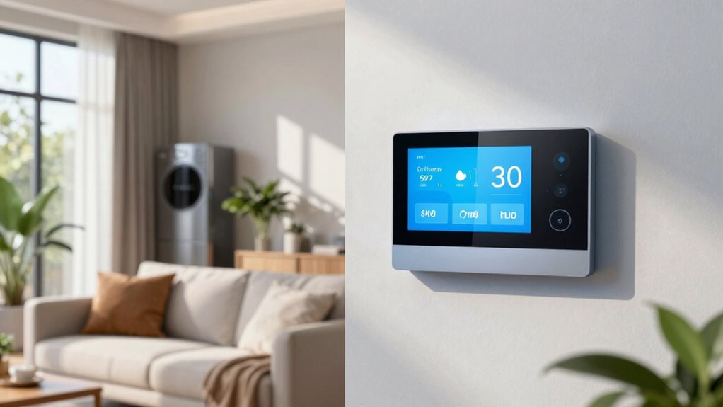 Remote control features enhance the versatility of smart thermostats, but scheduling capabilities take convenience to another level. With 7-day programmable scheduling, I can customize my thermostat to match my daily routines, ensuring comfort when I’m home and energy savings when I’m away. Many models offer flexible options for home, away, and sleep modes, automatically adjusting temperatures to optimize efficiency. I’m particularly impressed with those that use geofencing technology, which adjusts settings based on my location. Plus, some thermostats learn my habits over time, creating energy-efficient routines without me needing to lift a finger. By utilizing these scheduling features, I’ve seen potential savings of up to 23% on my heating and cooling costs annually. That’s a win-win!
