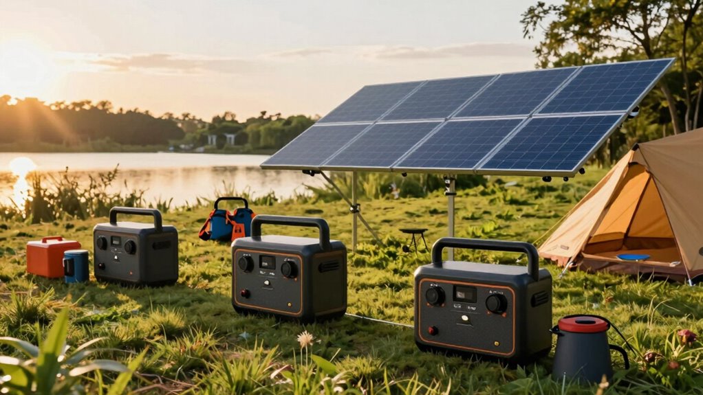 Choosing the right solar generator kit starts with understanding your power capacity requirements. First, I assess my power needs by calculating the total wattage of the devices I plan to use. It’s wise to select a generator with at least 20% more capacity than my combined wattage to handle peak usage. I also look for a generator with sufficient watt-hour (Wh) capacity to keep my devices running for the desired duration. For instance, a 1000Wh generator can power a 100W device for about 10 hours. Additionally, I consider the surge power rating to make sure it can start high-demand appliances. Finally, opting for lithium iron phosphate (LiFePO4) batteries guarantees longevity and reliability, especially if I need expandable capacity for future energy needs.
