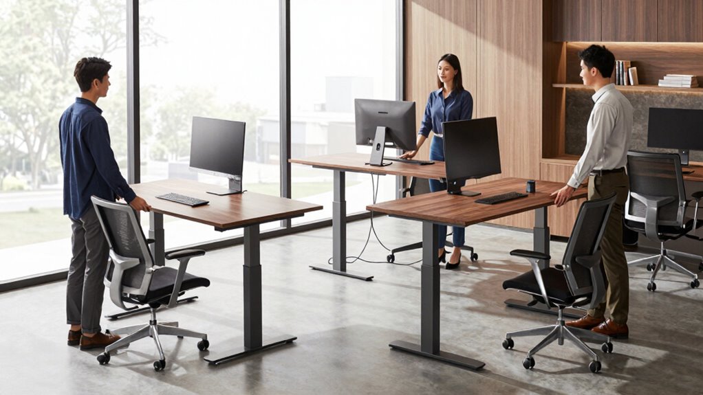 Standing desks accommodate taller users with longer limbs by offering adjustable height ranges, often up to 50 inches or more. I look for desks with smooth, easy-to-use mechanisms that let me set the height precisely. Some desks also feature extended keyboard trays and monitor arms, so I can customize my workspace for comfort. This flexibility helps me maintain proper posture and prevents strain during long work sessions.