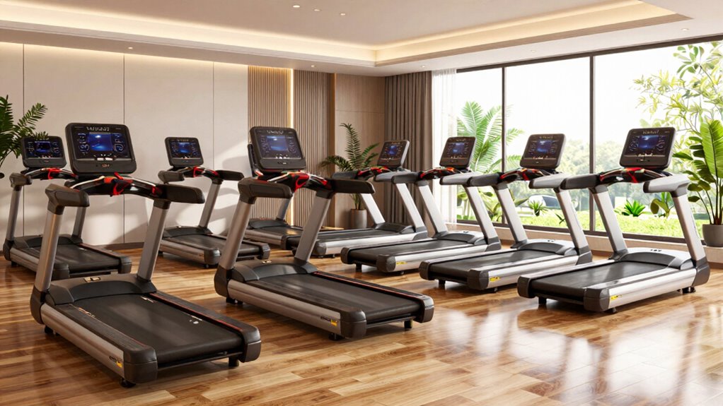 Choosing a treadmill with an appropriate noise level is crucial, especially if you’re in a shared living space. I’ve found that quieter models, typically operating below 50 dB, are perfect for apartments. Many modern treadmills come with brushless motors, running as low as 40 dB, ensuring my workouts don’t disturb anyone else. A lower noise level allows me to enjoy my favorite TV shows or music without interruptions. However, I’ve learned that higher horsepower motors can be noisier, so I balance power with quiet operation. Also, look for models with sound-dampening technology and cushioned running surfaces to minimize mechanical and impact noise. This way, I can focus on my fitness without worrying about bothering others.