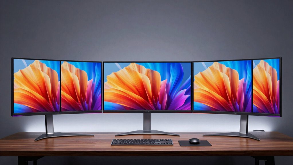 Choosing the right display technology for a 49-inch ultrawide monitor is essential, as it directly affects image quality, responsiveness, and your overall experience. VA panels offer high contrast and deep blacks, making them great for immersive viewing, though they can have slower response times. IPS panels provide better color accuracy and wider viewing angles, ideal for creative work and detailed visuals. OLED screens deliver vibrant colors, true blacks, and quick response times, enhancing multimedia and gaming experiences, but they tend to be pricier and may face burn-in issues. Each technology has its strengths, so your choice depends on your primary use—whether you prioritize contrast, color precision, or responsiveness. Understanding these differences helps you select a monitor that best fits your needs.